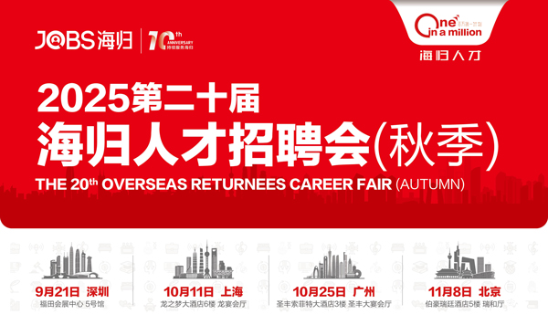 金秋将至,硕果盈枝。JOBS海归招聘会迎来辉煌十周年! 在这个具有里程碑意义的时刻,第二十届海归人才会(秋季)将于9-11月强势登陆深