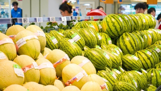 进口水果、鲜活大海鲜是本地消费者的最爱。波士顿龙虾和俄罗斯帝王蟹的摊位前挤满了人,饱满的榴莲一个接一个被剥好、打包放进顾客的购物车。据了解,盒马已建成8个供应链中心、超300个直采基地、8个物流中转仓,遍布全国乃至延伸至海外的供应链网络,顾客可以可以无时差享受到新疆的水果、挪威的三文鱼、马来西亚的榴莲。