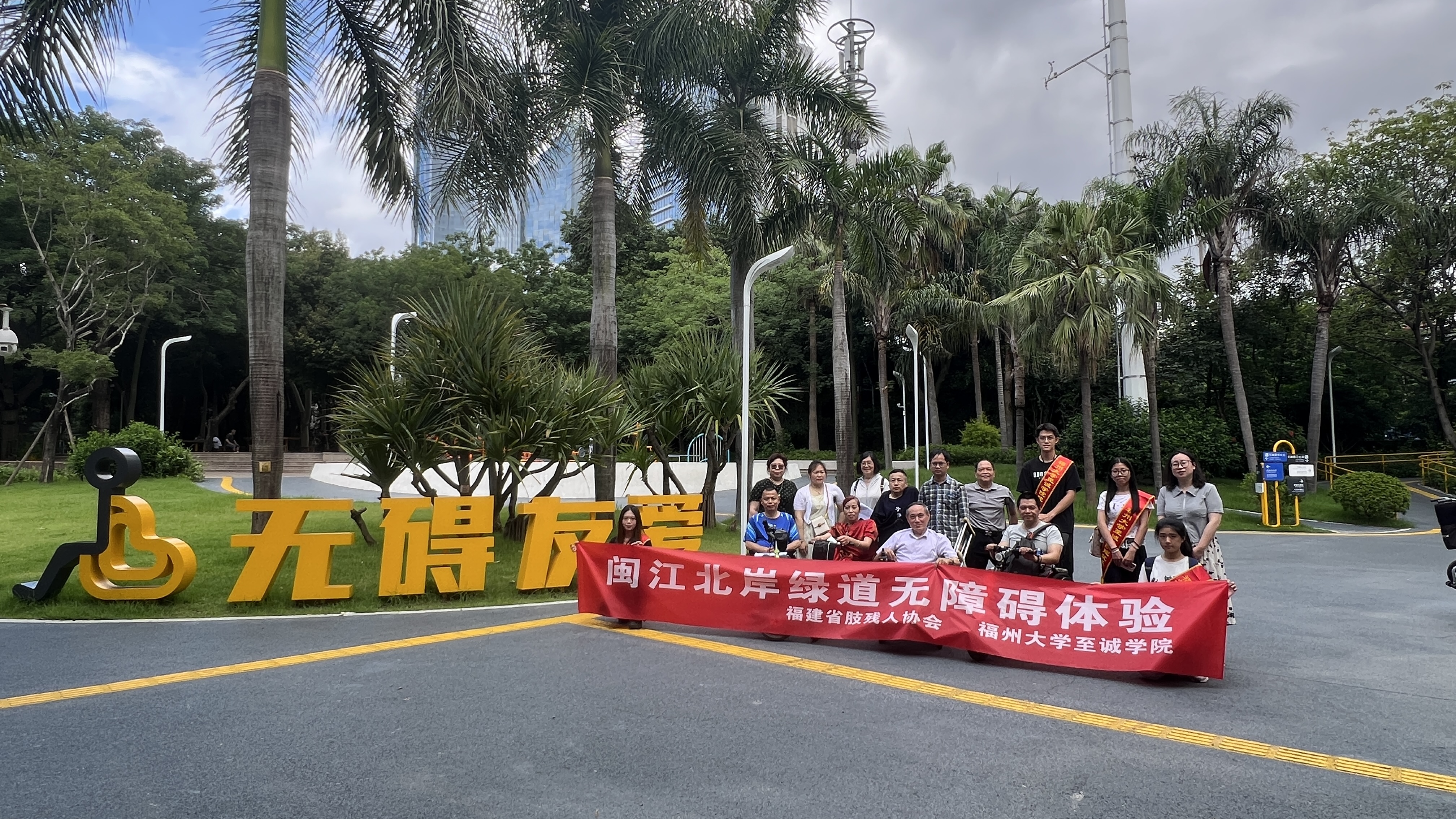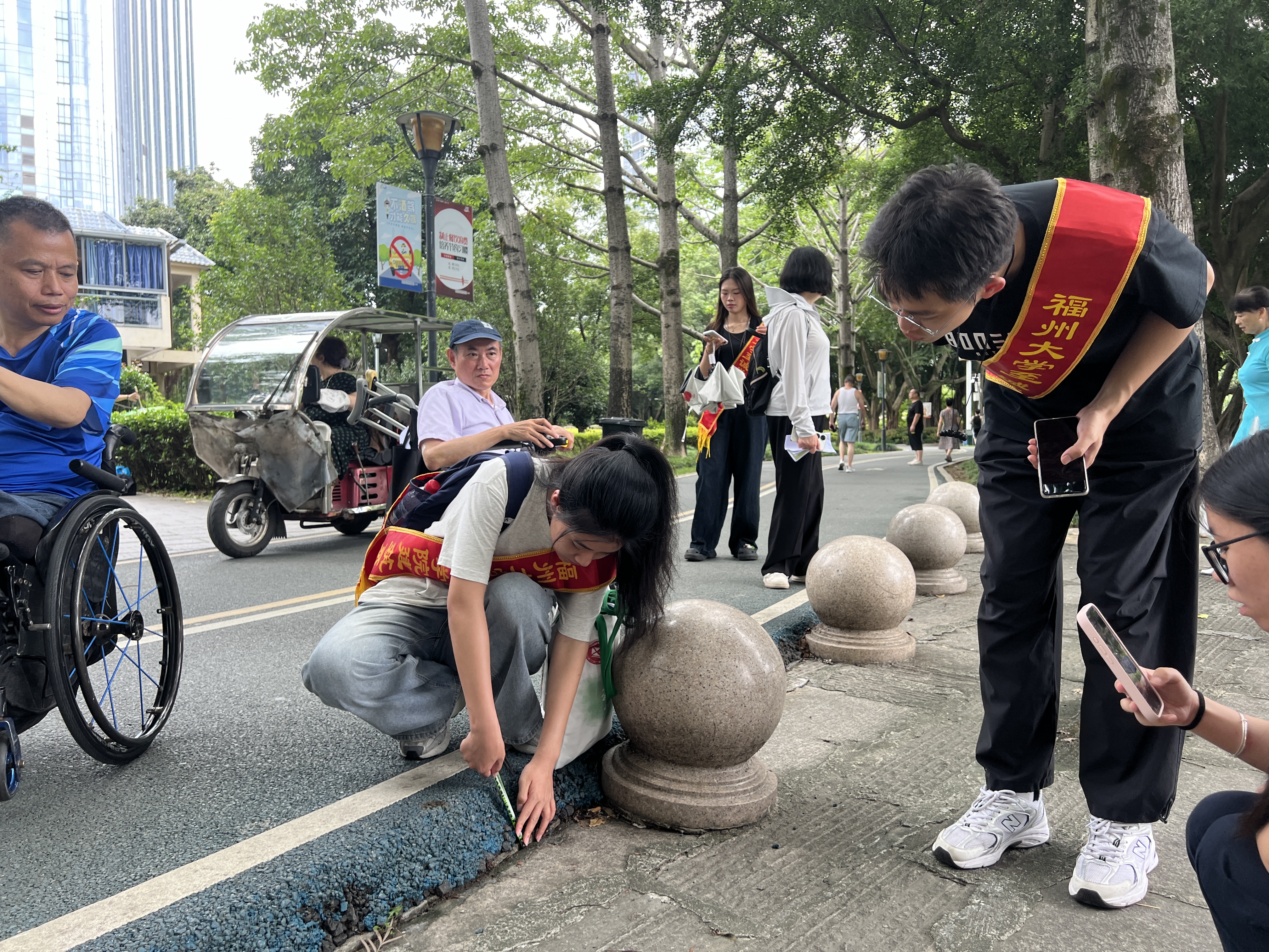 2025年6月15日,福州大学至诚学院建筑系“榕桥畅行实践队”成员联合福建省肢残人协会,于闽江北岸绿道开展无障碍环境体验与调研活动。
