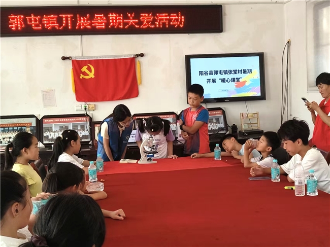 为激发小朋友对植物的探索欲,深入了解植物的微观结构,7月29日,聊城大学药学与食品工程学院红药先锋志愿服务队于聊城市阳谷县郭屯镇张堂村举办以 “植物微观奇寻,显微世界探秘”为主题的社会实践活动。