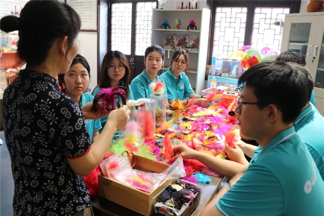 实践团先参观青州市博物馆,通过馆藏书画、陶瓷、石刻等展品感受青州历史文化底蕴。在青州市非遗传承中心,国家级非遗青州花毽传承人李敬讲解花毽历史与制作工艺,李红老师现场演示花毽踢法,让成员们切身感受技艺魅力与健身乐趣。