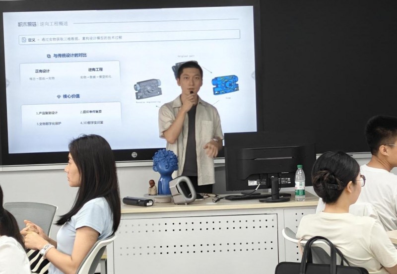 培训班共计八天,课程涵盖三维模型基本概念、三维正向建模软件学习、逆向工程建模学习、虚拟现实(VR/AR)应用软件学习以及案例实操等,其中积木易搭工程师主要为老师们进行逆向工程建模培训。在培训过程中,积木易搭工程师向老师们讲解了什么是逆向工程设计、与传统的正向工程设计的区别、逆向工程建模的核心价值与应用场景、逆向工程建模技术未来发展趋势。