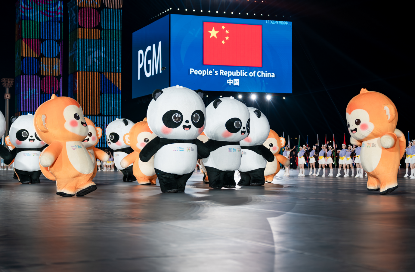 吉祥物的“爆款体质”,本质是青年真诚的感染力。当“锦仔”追着外国运动员贴贴,当“蜀宝”的“小碎步”在场上飞跑,这些未加修饰的互动之所以打动人心,正因为其中藏着学子们发自内心的热情。有同学为了演活“锦仔”翻看川金丝猴纪录片学习动作,有同学在听到现场播报出“中国”时感动落泪,这种将角色与情感深度融合的投入,让吉祥物超越了表演符号,成为连接世界的微笑使者。