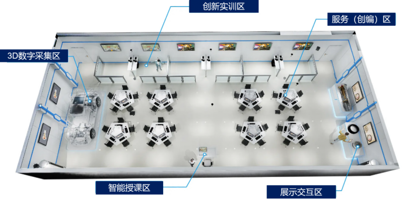 在产业人才需求升级、现代教育理念深化以及教育数字化转型升级的背景下,各院校搭建跨学科专业的综合实训空间,显得重要且迫切。对于各院校而言,搭建跨学科专业的综合实训空间,能够打破学科与专业之间的壁垒、打破理论教学与实践应用之间的壁垒、打破学校与企业之间的壁垒,打造一个融合学习、实践、创新等多种功能的生态系统。且相较于学校为每个专业单独建设一个功能单一、使用率不高的实训室,这种跨学科的综合实训空间可以实现各学科资源共享,避免重复建设,大大节约了教学成本。