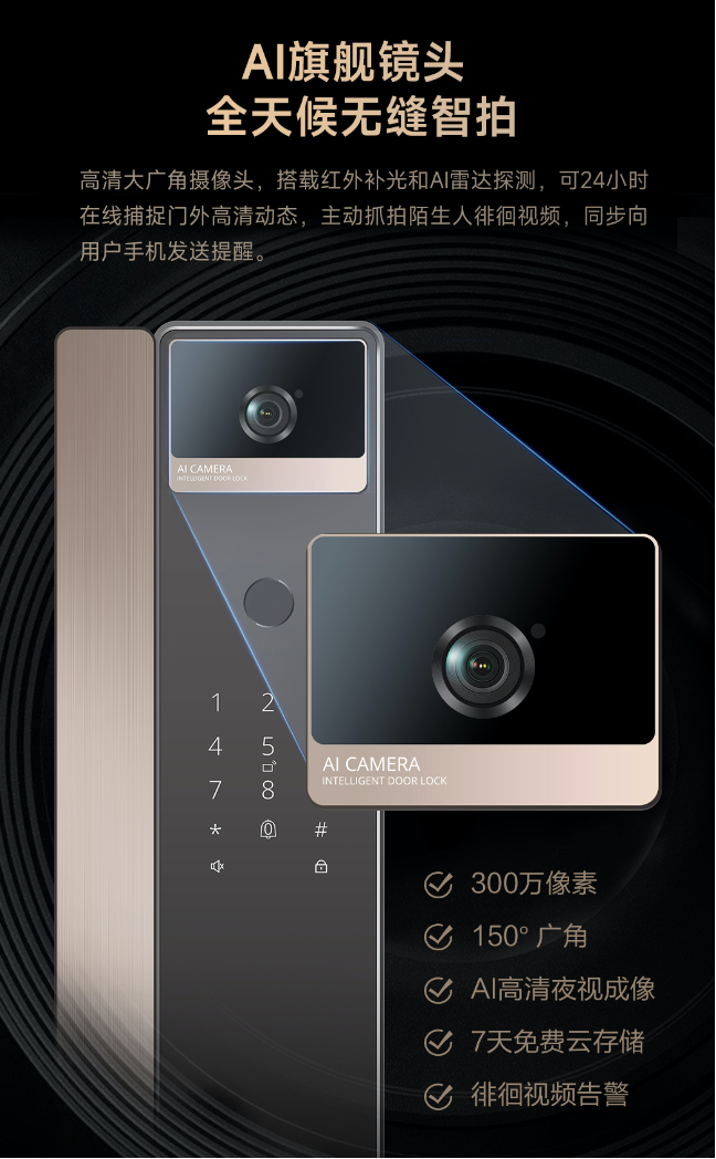 值得一提的是,海尔金吾卫S900采用了150°超广角视野。站在门前,基本能看清从脚到头甚至门外走廊两侧的情况,高清画质在白天和夜晚都清晰可辨。最令人安心的是它的紧急情况电话告警功能,一旦检测到异常逗留或暴力撬锁,能及时通知,安全感爆棚!