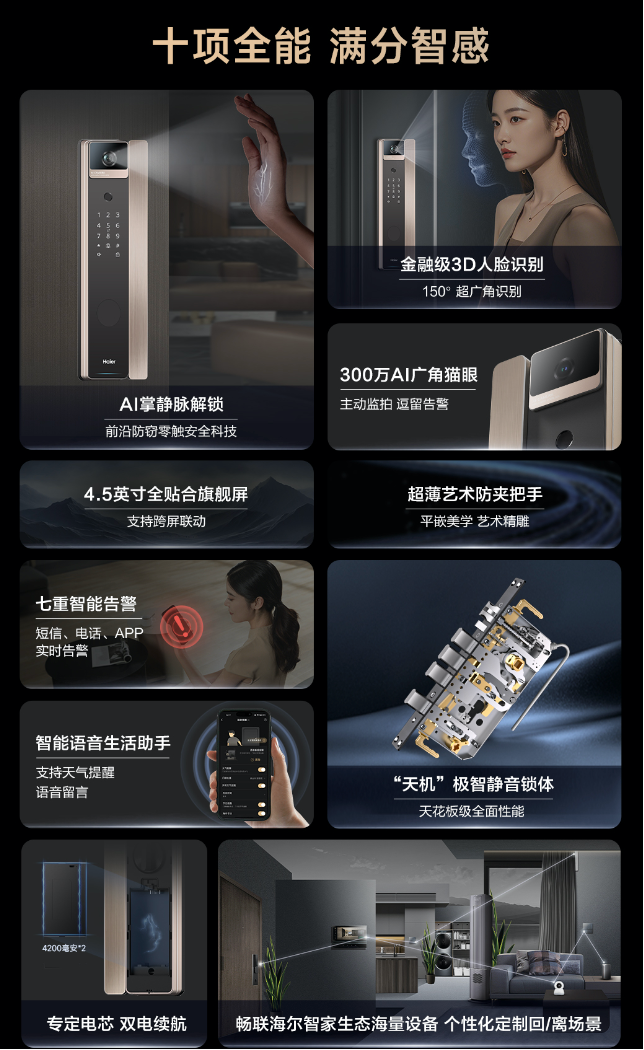如果你正在寻找一把顶级安全、解锁方式多样且便捷的智能门锁,海尔金吾卫S900完全可以胜任。如果正计划打造一个真正深度联动、有灵魂的智慧家庭,S900凭借其强大的生态融合能力和场景化体验,绝对值得推荐!安全是它的底线,而智慧与便捷,才是它闪耀的亮点!