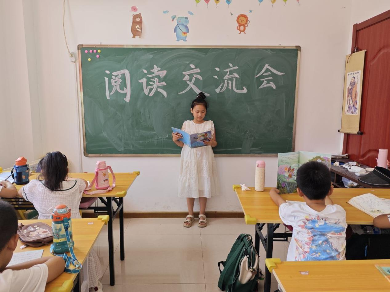 图为学生在阅读交流上分享自己喜欢的篇章。