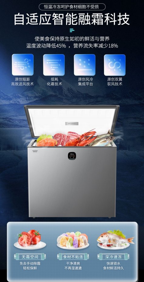 在追求储鲜品质的同时,用户对家电能耗的关注度也持续提升。澳柯玛风冷变频系列卧式冷柜以变频技术为核心,压缩机可根据舱内食材量与温度需求智能调节运行功率:食材少、温度稳定时自动降频低耗运行,需快速制冷时高频全力工作,相比定频冷柜能耗大幅降低,长期使用更省钱。同时,变频技术还能减少压缩机启停频次,运行噪音更低、磨损更小,既为家庭营造安静环境,也延长产品使用寿命,兼顾 “节能、静音、耐用” 三重优势。