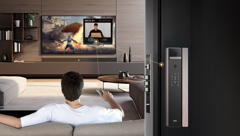 除了进出门方便,海尔金吾卫智能门锁还能深度联动全屋智慧场景,支持与电视、大脑屏、空调、照明等2W+智能组件联动。回家开门,海尔智慧家场景即可启动全屋灯光亮起、窗帘关闭,有访客按铃时,门外画面能直接推送四类屏幕,用户能随时随地可视对讲。