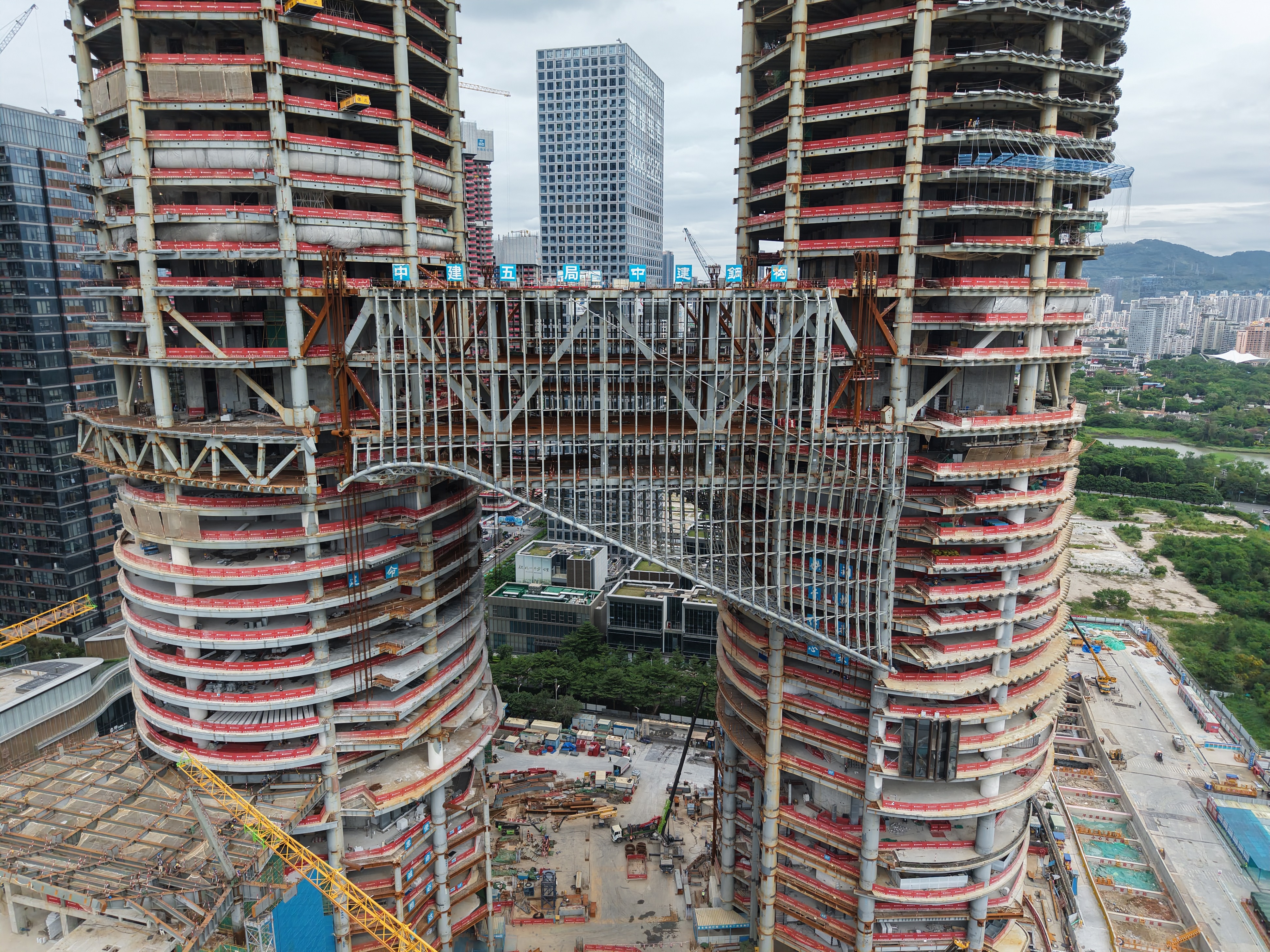 C塔由深圳湾区城市建设发展有限公司开发建设,中建五局总承包,中建钢构负责钢结构深化设计、制造和安装。建筑最高高度400米,是全国连廊双子塔第一高楼和深圳市首批智能建造试点项目。建成后,将成为片区TOD地标、大湾区标杆示范项目以及服务企业总部国际组织的世界级平台,将成为点亮世界的“未来之塔”。(通讯员:黄李新、洪兆林)