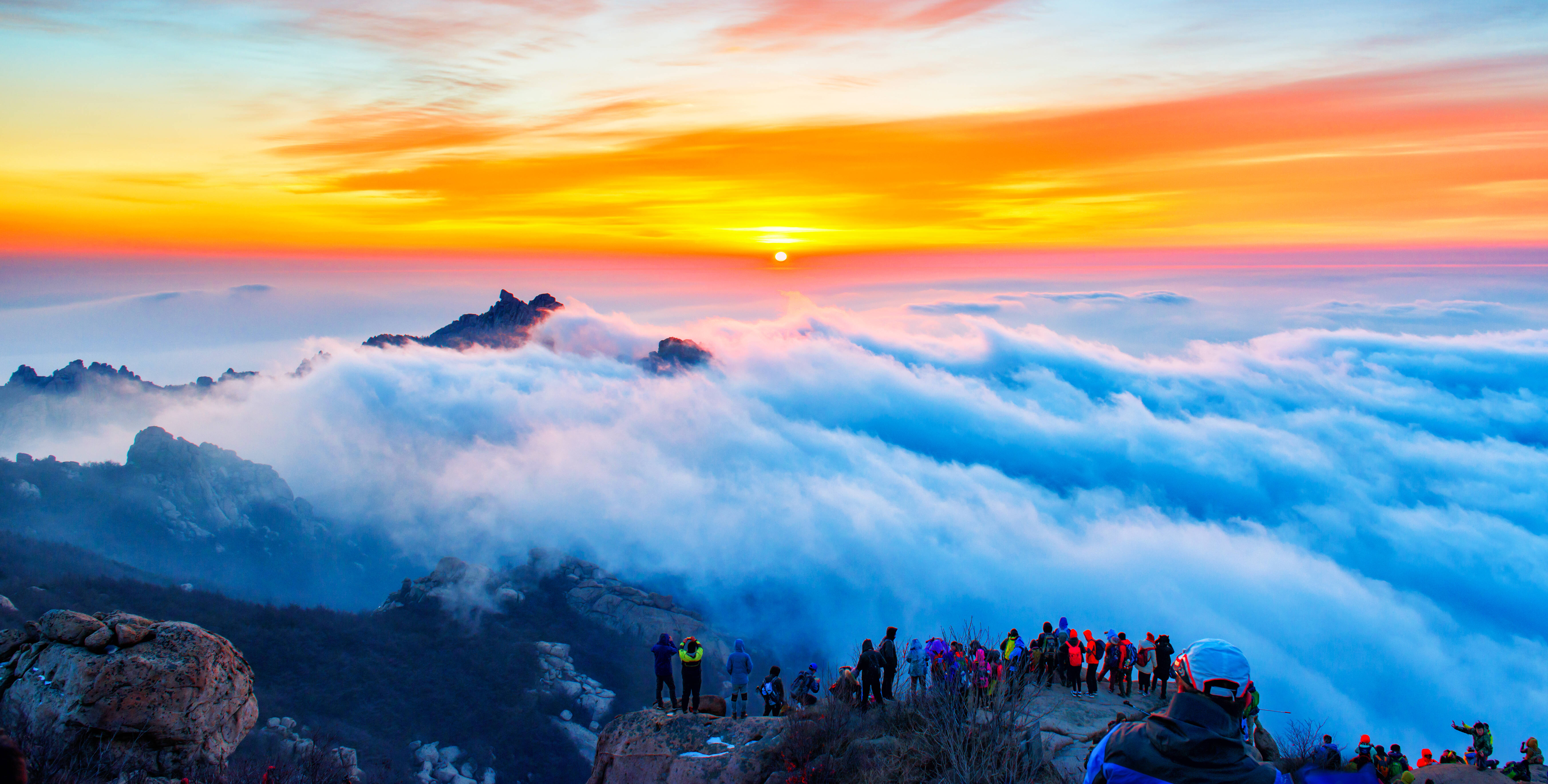 1. 山海问道经典线(巨峰+太清):登巨峰观山海全景,科普冰川遗迹、气象景观;访太清赏千年银杏,探秘道教文化圣地,感受“道法自然”的宁静与厚重,适配中小学研学、文化探秘类团队,看点密集。