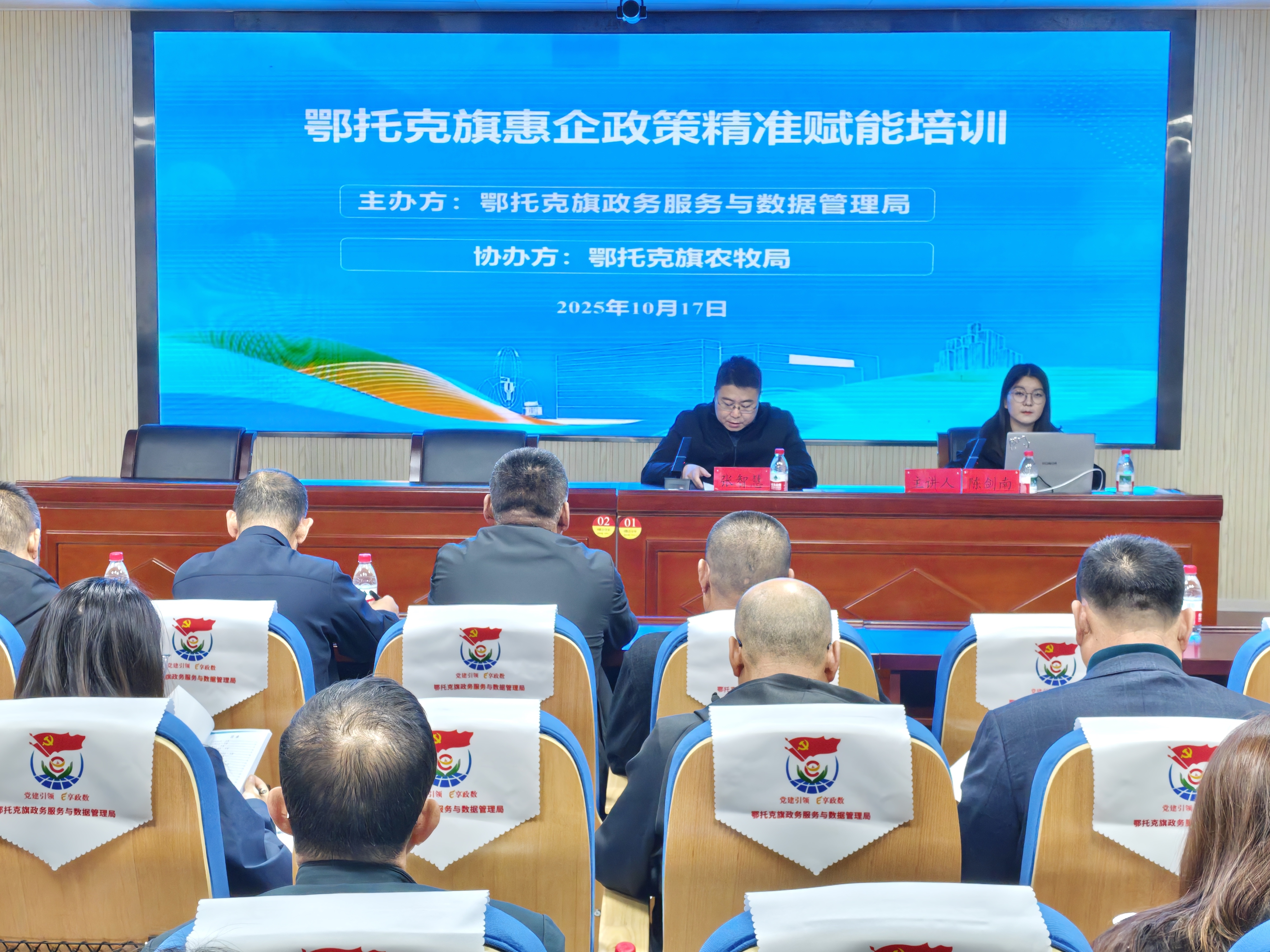 为让惠企政策真正走进企业、用在实处,鄂托克旗从政策传导机制入手,构建全链条精准赋能体系。一方面创新“分类施策、精准滴灌”培训模式,按能源、农牧、制造业、个体工商户等行业及企业规模梯度设计定制化内容,实现全产业、全规模企业需求全覆盖,推动企业从“政策盲区”向“主动用策”转变。为强化培训实效,旗政数局联合能源局、市场监管局等多部门政策专家,联动行业资深导师及研究学者组建专业师资矩阵,培训现场设置“即问即答”互动答疑区,面对面解答企业高频疑问,破解政策解读碎片化、申报指导滞后性问题。同时配套推出《鄂托克旗惠企政策汇编手册》及实操工具包,系统整合四级政策资源,实现政策“即查即用、学用贯通”,切实解决企业“不会用策”难题。在此基础上,坚持以企业需求为导向,通过问卷、走访、座谈开展全覆盖调研,动态调整培训内容形成“企业点单、政府配菜”模式,六期培训累计覆盖300余家企业和个体工商户,从中小型企业延伸至个体工商户,全流程满意度连续保持100%,政策落地实效显著提升。