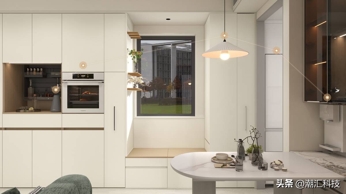 在海尔的适老化样板间中,我们看到了这一理念的生动实践。在智慧服务方面,家中植入了“智慧康养”主动守护系统。从能监测呼吸心跳的智能床,到燃气泄漏自动报警,科技无声守护每一天。厨房区域特别配备了烟灶联动功能,开火瞬间油烟机自动启动,防干烧更安心。顶部的声光报警器、燃气感应器和烟雾感应器,共同组成了安全的保护盾,实时监测厨房用火用气的安全。