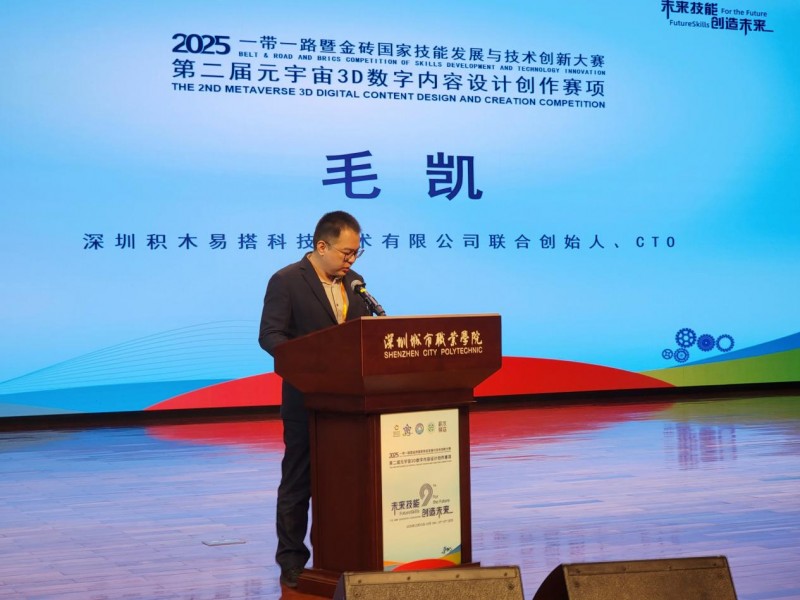 深圳积木易搭科技技术有限公司联合创始人&CTO毛凯作为大赛联合承办方、技术支持方代表发言。他强调,当前,在元宇宙生态中,3D数字内容的生产与开发已成为推动数字经济增长的重要引擎。从数字孪生工厂到文旅沉浸式体验,从虚拟仿真实训教学到虚拟空间直播,3D数字内容的开发与应用正加速融入千行百业,催生出全新的产业形态与巨大的商业价值。