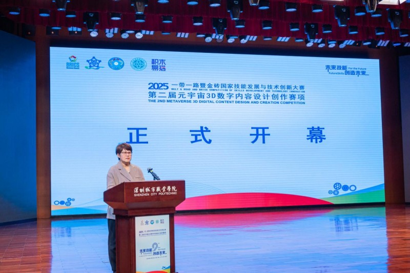 深圳城市职业学院(深圳技师学院)副校长朱爱群代表大赛承办校发表致辞,朱校长首先代表深圳城市职业学院(深圳技师学院)欢迎领导、嘉宾和参赛队师生的到来,感谢组委会和合作单位。她指出,数字技术重塑世界格局,金砖国家持续深化技能发展与技术创新合作是应对时代挑战的关键,大赛聚焦元宇宙3D数字内容创作,既精准契合了数字经济需求,更是积极响应一带一路倡议,深化金砖国家之间技能交流与人才共享的生动实践。大赛为广大技能青年人才搭建展示才华、切磋技艺的国际化舞台,学校承诺将周密组织、完善保障和热情服务,确保赛事公平、有序、高效开展。预祝选手取得佳绩、大赛圆满成功。