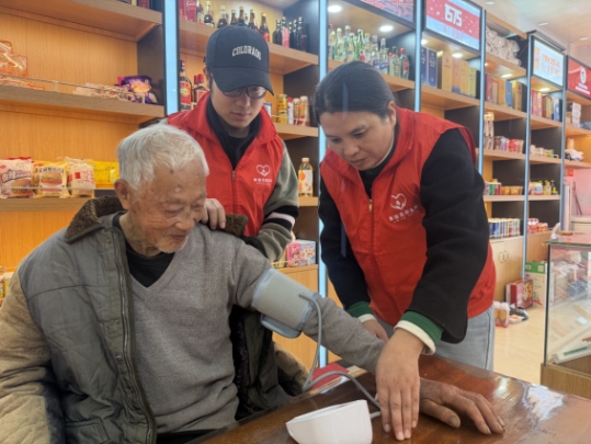 老人看着血压仪感慨道:“年纪大了腿脚不便,你们定期上门来帮我量血压、讲知识,真是太方便了!”这缕暖心的“健康红”,把专业的健康服务送到群众身边,让温暖在店铺的烟火气里静静流淌。
