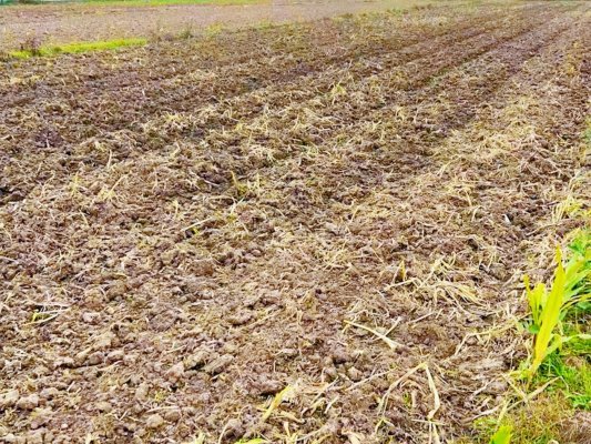 拖拉机在田里轰鸣,犁刀切开硬邦邦的土地,前茬作物的茎秆残叶也跟着被切碎,埋进地里。
