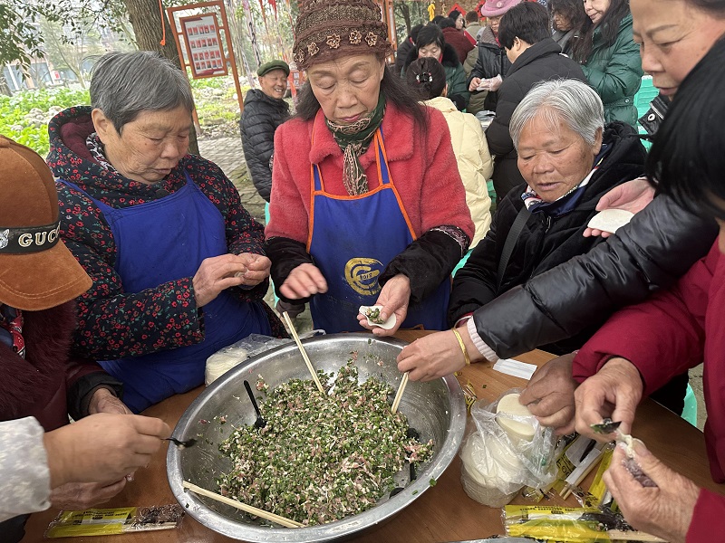 丰收的喜悦从田间延续到了餐桌。在温馨的香樟林活动区,居民们利用新鲜采收的蔬菜作为馅料,一起动手包饺子。大家围坐在一起,手法娴熟,边包饺子边聊家常,交流着各地的年俗和烹饪心得,场面其乐融融。当一锅锅热气腾腾、香气扑鼻的饺子出锅时,大家共同品尝这份凝聚着邻里情谊与劳动成果的“团圆饭”,现场暖意浓浓,充满了家的温暖。