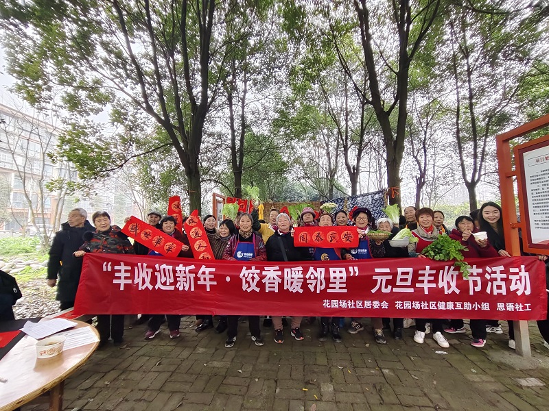 辞旧迎新之际,收获的喜悦洋溢在社区。2025年12月30日上午,由花园场社区支持、思语社会工作服务中心组织开展的“丰收迎新年·饺香暖邻里”元旦丰收节活动,在社区生态农耕园及香樟林欢乐举行。活动通过共享农耕成果、共制团圆美食、共写新春祝福等形式,营造了喜庆祥和的节日氛围,吸引了众多居民热情参与。