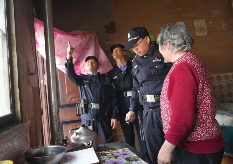 民警辅警聚焦老旧小区、出租房屋等火灾高风险场所,组织“一村一警”+网格员组成排查小组,逐楼逐户开展“拉网式”隐患排查。工作人员重点检查燃气管道是否老化渗漏、电器线路是否存在私拉乱接、取暖设备是否与易燃物保持安全距离等关键风险点。对发现的问题现场指导居民完成整改。针对独居老人安全意识相对薄弱的情况,民警辅警反复叮嘱用火安全事项,主动帮助整理杂乱线路,以细致行动筑牢安全防线。