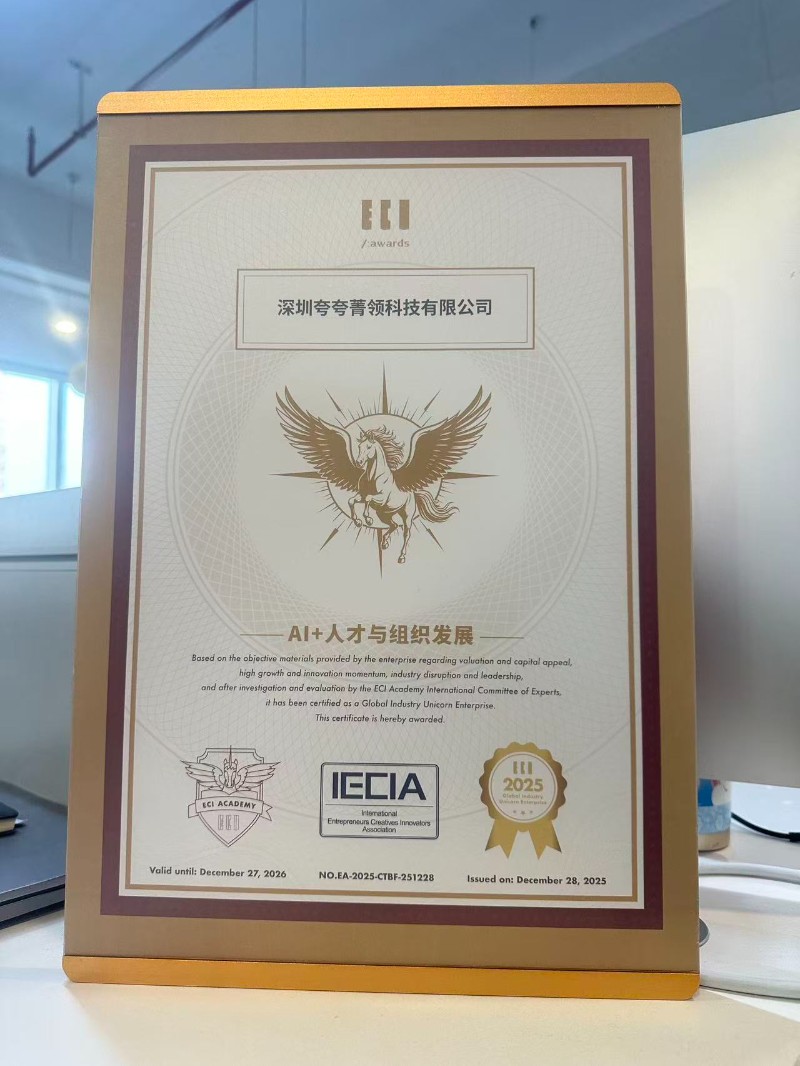 深圳夸夸菁领科技有限公司凭借其核心产品 DinTal 数智员工在行业内的突破性实践与引领力,一举斩获两大重磅荣誉 —— 夸夸菁领创始人、董事长兼 CEO 胡伟凭借在人才服务行业变革与 AI 数智创新领域的卓越成就,成功摘得「ECI AWARDS 2025 年度首席创新官」大奖,夸夸菁领荣登「ECI 2025 年度智能奇点创新企业榜」。