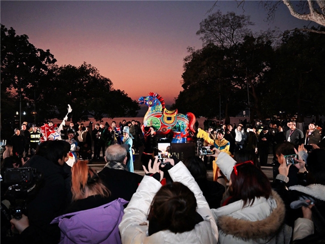 在清河坊历史街区,新春美陈的营造是一场与千年文脉的深度对话。杭州市上城区综合行政执法局充分尊重并挖掘街区的历史肌理与宋文化底蕴,围绕“国潮嬉游 马上有戏”主题,在鼓楼区域、水系旁、巷道间指导布设新春系列美陈,巧妙融合宋韵底蕴与潮玩艺术,运用骐骥迎春、灵燕祥云、流转走马灯等特色元素,联动景观照明提升整体效果,重现了“凤箫声动,玉壶光转”的古典意境。