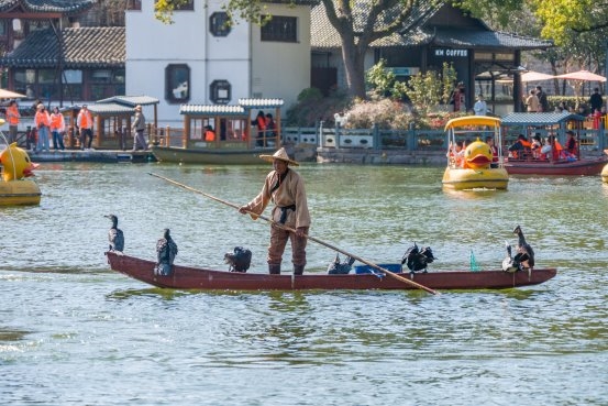 水上实景演出也颇受欢迎。正月初五,天一阁·月湖景区经典IP“鸬鹚捕鱼”民俗表演如期上演,渔翁轻挥竹篙、鸬鹚跃水叼鱼,碧波之上勾勒出一幅灵动鲜活的江南水乡图。“课本里的场景真实再现,太震撼了!”不少游客驻足观赏、拍照打卡,沉浸式感受非遗民俗的独特魅力。