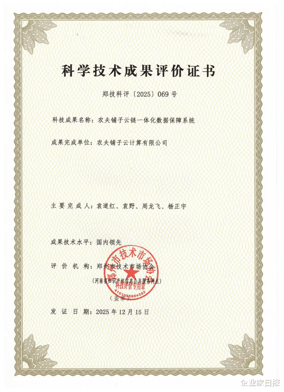 2026年1月31日,在郑州举办的2026第二届数智共同体发展大会暨河南省数字经济产业协会一届四次会员大会上,袁道红荣膺“数字经济领军企业家”“年度优秀会长最佳贡献奖和创新引领奖”,农夫铺子集团斩获“数字经济领军企业”“数字创新标杆企业”“卓越转型案例和生态共建贡献奖”等多项重磅荣誉,其独创的“农夫铺子方案”成为数实融合领域可复制、可推广的行业范式。