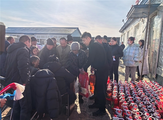 这边彩排还没结束,那边春节慰问活动也开始了。为了让村民尽享节日的喜庆,王兴龙早早地为大家协调了米面油等慰问物资,陆续发放给村里得脱贫户、监测户、残疾户等相关农户。“逢年过节的,王书记就会到家里来看我们,每次来都带点米面啥的,生怕我们不够吃。”村民张景义满足的说。