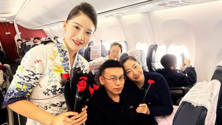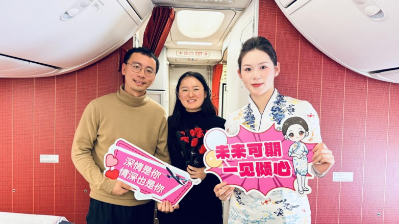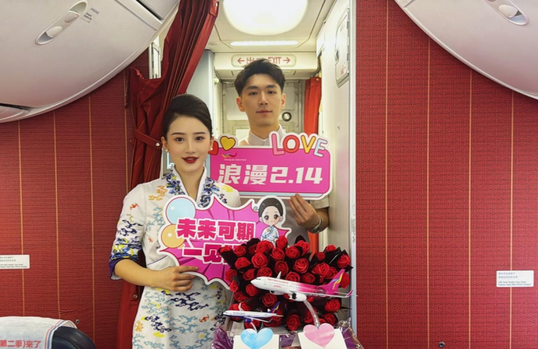 “爱可以是炽热的宣言,也可以是细水长流的陪伴;可以是情侣间的默契,也可以是家人间的牵挂、朋友间的支持,乃至陌生人之间此刻共享的这份空中温情。”随着这段深情广播响起,整个客舱沉浸在温暖的氛围中。这场主题活动超越了单纯的情人节庆祝,成为一次关于爱与联结的广泛共鸣,让每位旅客都感受到了爱的多元表达。