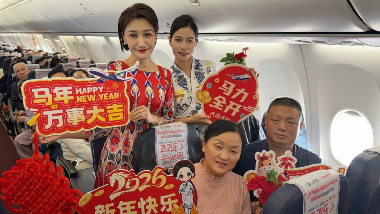 (通讯员 黄敏)新春伊始,丝路欢歌。2026年2月17日,农历大年初一,新海航航空集团旗下乌鲁木齐航空在UQ2591乌鲁木齐至广州的航班上,精心策划开展了“丝路驰骋 马跃新程”主题航班活动,将浓浓年味、新疆风情与特色航空服务融为一体,在万米高空为旅客送上别具一格的新春祝福。