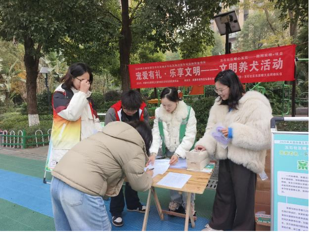 为解决养宠扰民、犬只粪便清理不及时等问题,东原晴天见小区网格队伍于2025年12月开展“宠爱有礼·乐享文明”宣传活动。现场不仅设置了知识问答、凭证领取宠物拾便袋和牵引绳等环节,还在小区主干道、草坪旁安装了6个文明养犬提示牌和3个拾便箱。“养犬是我们的权利,但文明养犬是义务,现在下楼就能拾取便袋,我们也不好意思再让狗狗‘随地大小便’了。”养犬居民李女士的话道出了不少住户的心声。