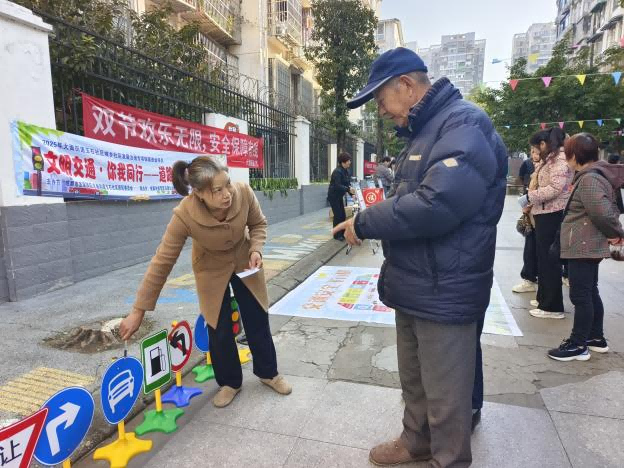 针对居民反映的老年人交通安全意识薄弱问题,白鹤一期开心小分队于2025年11月开展道路交通安全宣传活动。志愿者们摒弃说教式宣传,通过“交通安全飞行棋”互动游戏、交通标识实景演练、知识问答等形式,将枯燥的交通规则变成了居民喜闻乐见的趣味活动。本次活动直接覆盖居民150余人次,发放宣传资料200余份,让“文明出行、平安回家”的理念深入每一个家庭。