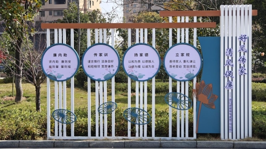(在办公楼园区设置清廉家风宣传牌)