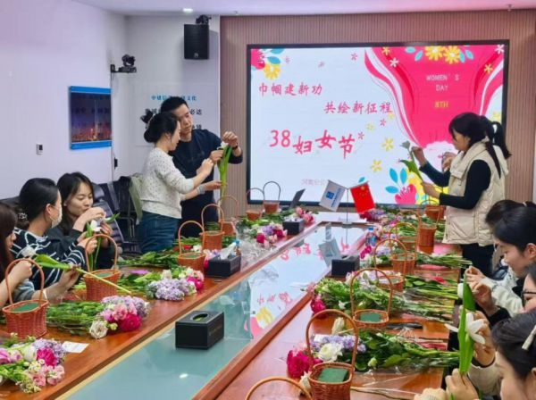 3月4日下午,为庆祝即将到来的“三八”国际妇女节,中建一局二公司河南分公司开展了“巾帼建新功 共绘新征程”主题花艺体验活动。活动旨在丰富女职工的精神文化生活,提升团队凝聚力,让平日里在建筑岗位上辛勤耕耘的“半边天”们,在花香与创意中度过一个温馨、雅致、充满艺术气息的午后。