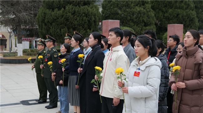 在泸定红色纪念碑前,全体人员庄严肃立,怀着崇敬之情向为民族解放事业英勇献身的革命先烈敬献鲜花、默哀致敬。铿锵的誓言、沉静的追思,不仅寄托着新时代青年对革命先烈的深切缅怀与崇高敬意,更进一步坚定了他们传承红色基因、担当时代使命的理想信念,为“十五五”规划建设贡献力量的决心更加坚定。
