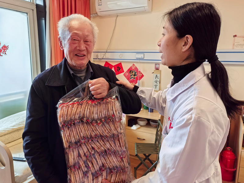 接过旺旺集团捐赠的雪饼,长者们的脸上洋溢着幸福的笑容。“‘旺旺’就是旺气,高院长这是盼着我们都身体硬朗、福气满满啊!”一位年逾八旬的长者拿着雪饼,拉着工作人员的手开心地说道。小小的一包雪饼,不仅是舌尖上的美味,更承载着兴园养老服务中心对长者们最真挚的祝福——愿老人们的生活旺上加旺,健康长寿,万事顺遂。