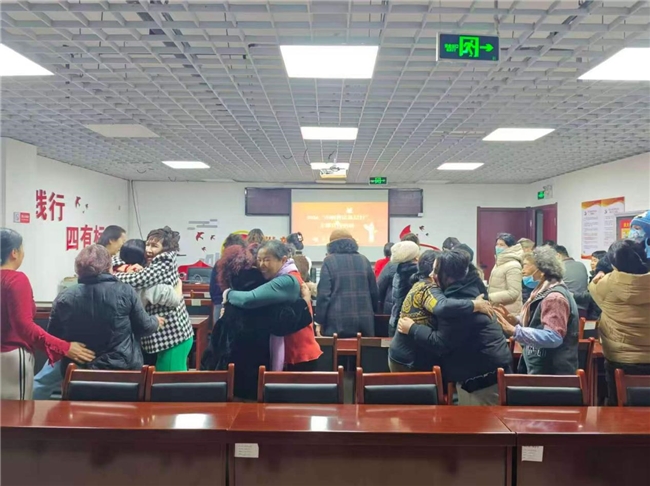 为打破初次相聚的生疏感,快速拉近学员间的距离,活动设置了趣味破冰游戏。“两人一组四掌相对,从一段故事中听到词语‘乌鸦’一人拍另一人手心对方躲避,听到词语‘乌龟’则反之”,简单易懂的规则瞬间点燃现场氛围,大家在欢声笑语中快速融入,原本拘谨的氛围变得轻松热烈。随后,曾老师组织大家排成五组纵队,开展暖心互动环节。成员们依次为前方同伴轻捏肩膀,真诚道出“辛苦你了”“谢谢你带给我快乐”,一句句朴实的话语传递着彼此的关怀与温暖,最后以拥抱致意,将现场温馨氛围推向高潮,让每一位参与者都感受到被看见、被认可的力量。