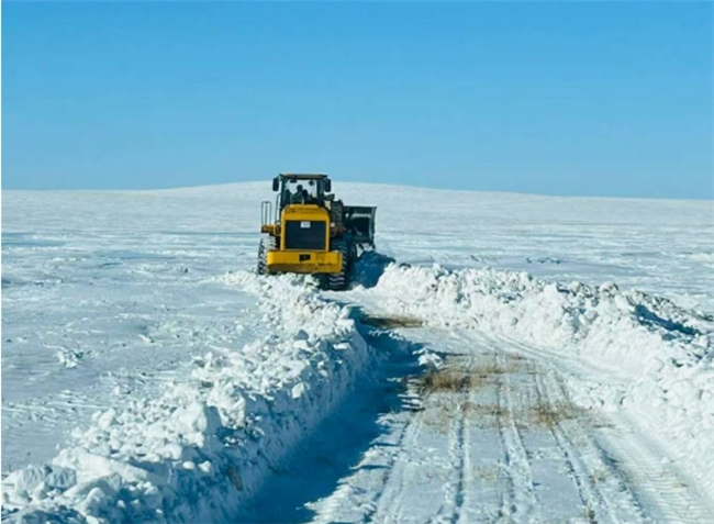 2026年2月28日至3月3日,蒙古国东部地区遭遇持续性强暴雪极端天气,东方省全域道路交通因积雪彻底中断,其中达西县牧区受灾情况尤为严峻:大量牧民棚圈被积雪掩埋,牲畜被埋压、冻饿风险急剧上升,饲草储备濒临耗尽,恰逢春季接羔关键期,牧民生产生活陷入严重危机。3月3日,接到达西县政府发来的紧急求援函后,新鑫公司第一时间启动应急响应机制,连夜抽调专业救援人员、调配除雪抢险设备,火速奔赴受灾区域开展救援。