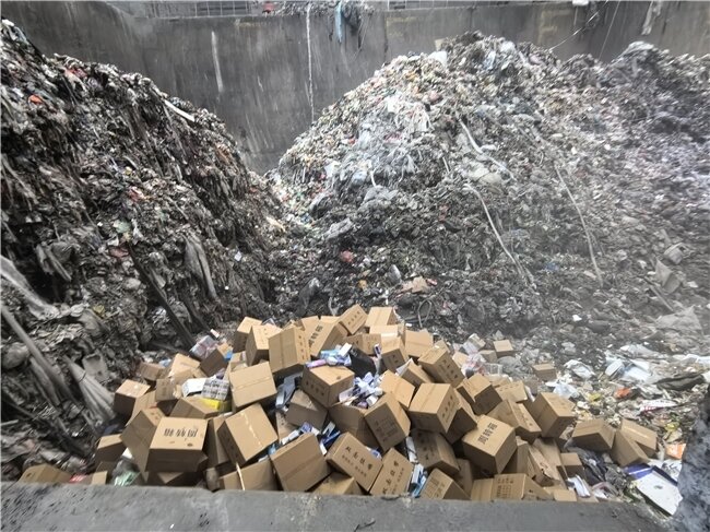 “开始销毁!”随着现场总指挥一声令下,工作人员将拆箱后的卷烟倒入封闭的垃圾储坑。随即,一只巨大的机械抓手伸入坑内,精准地抓起数万支假烟,稳稳地送入焚烧炉的进料口。