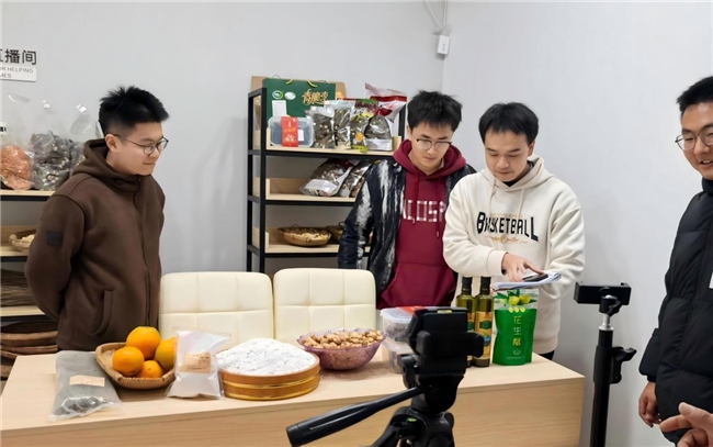 在白果街道高云社区,团队重点聚焦直播助农的实际情况开展调研。该社区党委书记是一名退役军人,多年来扎根基层,积极探索直播助农相关路径。近两年,他尝试在抖音、视频号等平台开展助农直播,创作内容聚焦乡村生活与农产品,以真诚接地气的表达迅速积累流量,带动本地农产品销售破圈。团队成员现场参观直播间设施布局,听取其在资源整合等方面的探索,进一步理解基层干部在直播助农中的多重角色与责任担当。