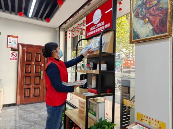 “您可以把这些政策宣传册、便民指南都放在‘香溢红色驿站’的书架上,来往的顾客和周边居民都能随手取阅,还能免费借用热水、应急药品这些物资。”“香溢”志愿者一边将宣传资料整齐摆放在驿站架上,一边向零售户介绍,“这个小阵地既能传递政策声音,也能为大家提供实实在在的便利。”