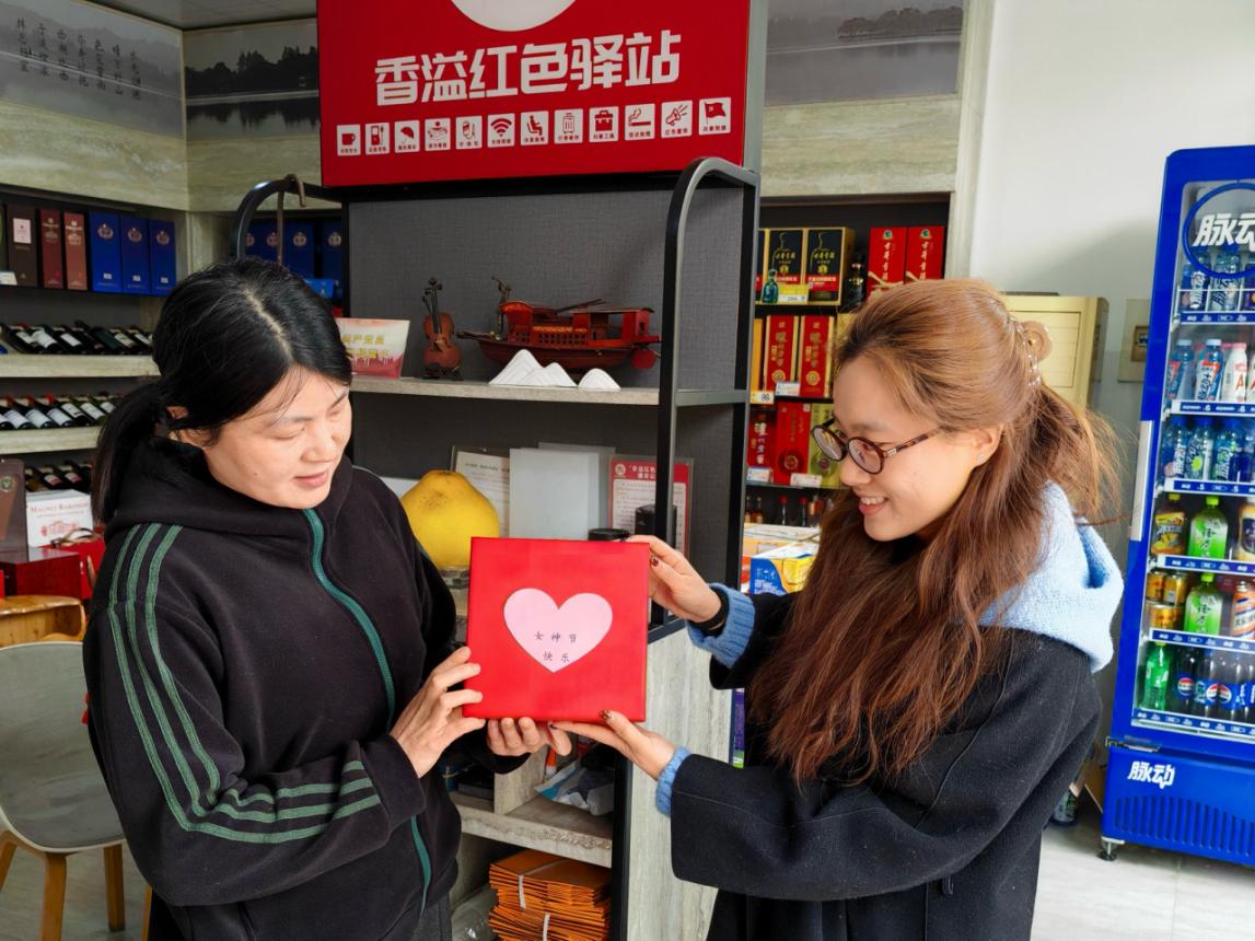 恰逢“三八”国际妇女节,志愿者们还特意为女性零售户准备了暖心的节日惊喜。他们走进一方方小店,将饱含春日暖意的祝福传递至女店主们手里。风桦烟酒店老板娘李娟接过礼盒时,眼角漾起笑意:“平时都是我服务顾客,今天也收到了属于我的节日祝福,真好,谢谢你们!”志愿服务的温暖,就如一缕春风,悄然吹进彼此心坎,拉近了企业与零售户的距离。