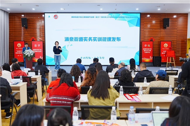 发布会上,聚焦基层治理高频重难点工作,“志愿服务积分管理”“小区流浪猫规范治理”“商居共融”等核心微课逐一精彩展播。其中,清泉社区原创的志愿服务积分创新机制课程,作为本次发布会的实务案例代表,进行了深度解读与经验推广,用真实案例、实操流程、落地成效,为全街道志愿服务管理提供了可复制、可推广的清泉方案。