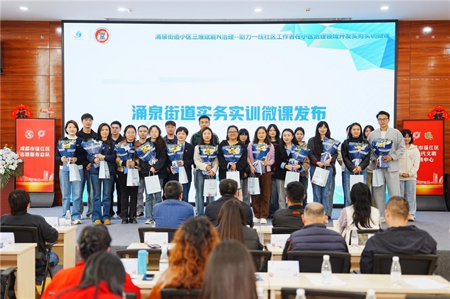 理论培训不接地气、实操经验难以复用、治理难题破解无方,是基层社区工作者日常工作中面临的普遍痛点。为破解这一困境,成都市温江区涌泉街道紧扣基层治理实际,聚焦一线社工能力提升需求,创新打造本土化、实务化、常态化社工实训微课体系,搭建专属社工的专业成长赋能平台。3月24日,以“专业赋能·实务笃行”为主题的社工节暨一线社区工作者实务实训微课发布会顺利举办,集中展示街道社工人才队伍建设阶段性成效,正式发布系列本土实务实训微课,推动基层治理人才培养模式迭代升级。