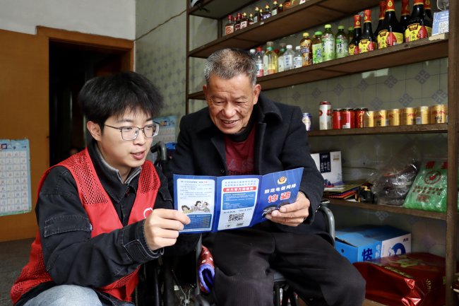 “香溢”志愿者周旭明拉着老人的手,细细叮嘱春季用电安全、防诈骗知识。吴传听眯着眼看了又看,粗糙的手掌抚过整洁的柜台,笑得合不拢嘴:“你们一来,屋子亮了,我这心里呀,也透亮了。”