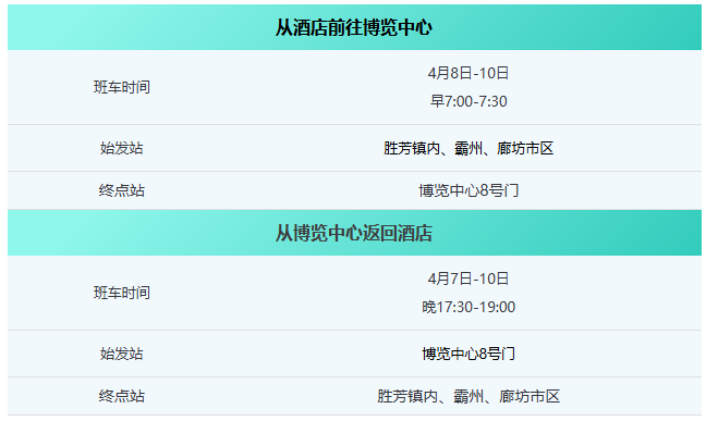 展会期间,博览中心A馆8号门设有酒店班车点,提供免费接送服务,助您无忧观展!