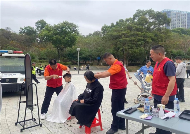 在义剪服务区,布吉党支部的志愿理发师细心接待每一位前来理发的居民,一边修剪头发一边亲切交谈,细致询问需求,用娴熟的手艺和贴心的服务,让居民“足不出园”就能享受免费便捷的理发服务,脸上纷纷洋溢着幸福的笑容。