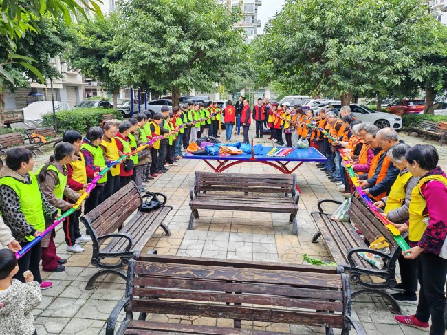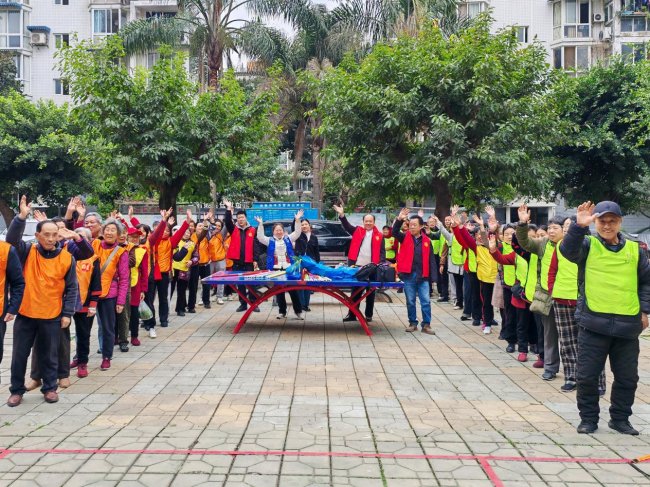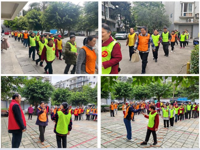 活动伊始,在小区党支部党员的带领下,56位居民精神抖擞地集结完毕,开启小区徒步两圈的热身环节。春日的小区草木葱茏、景致宜人,居民们迈着轻快的步伐并肩前行,有的畅谈生活趣事,有的交流健身心得,党员同志主动搀扶年长居民,全程贴心陪伴,让热身徒步不仅成为身体的舒展,更成为邻里间温情互动的开端,现场氛围轻松而热烈。