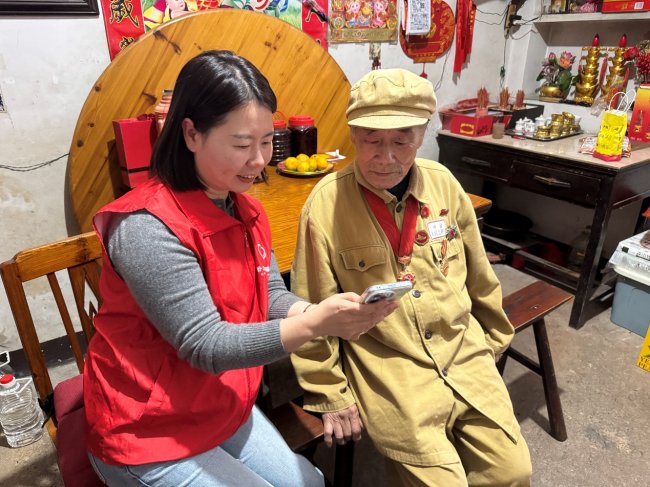 倾听是最深的致敬,行动是最好的传承。念及曹明棋老人年事已高、家人日常忙碌,“香溢”志愿者开展结对帮扶,利用业余时间定期上门为其整理家居、检修家电,贴心问询健康状况与生活所需,节日还专程送上生活用品和暖心慰问。忙完手头的活,志愿者便陪老人一同观看红色影片,那段浸着血与火的珍贵记忆,也在这份温暖陪伴中再度熠熠生辉。“曹老的故事从不是尘封的历史,而是鲜活的精神教材,永远照亮我们前行的路。”志愿者徐哲平有感而发。